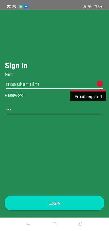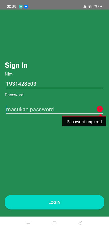 3. Memasukkan Nim dan password kedalam kolom EditText / Input Text.