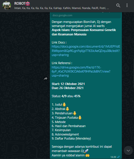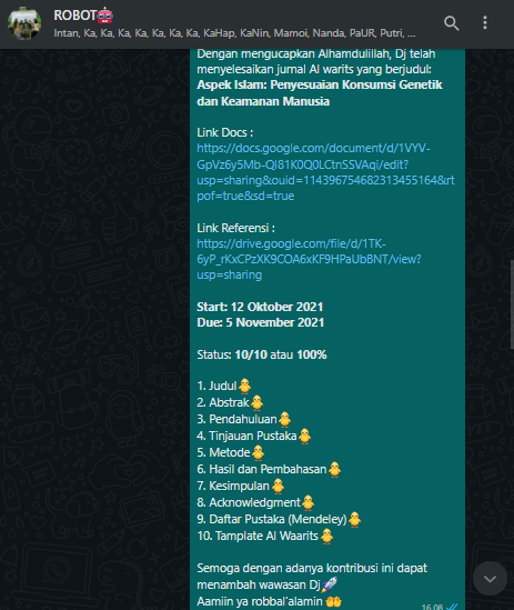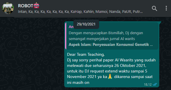 Namun Dj belum menyelesaikan Paper Al Warits sesuai dengan due yang telah ditentukan 🙏:(( yang akhirnya Dj memutusnya untuk meminta extend yaitu penambahan waktu untuk menyelesaikan Paper Al Warits.