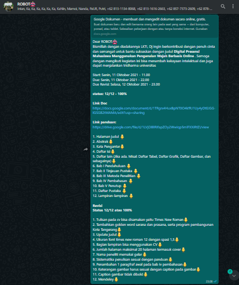 Pada tanggal 11 Oktober 2021 Dj berkontribusi membuat Laporan Akhir Hibah LKTI – Digital Presensi Mahasiswa Menggunakan Pengenalan Wajah Berbasis Online