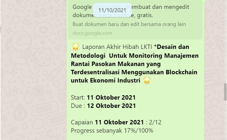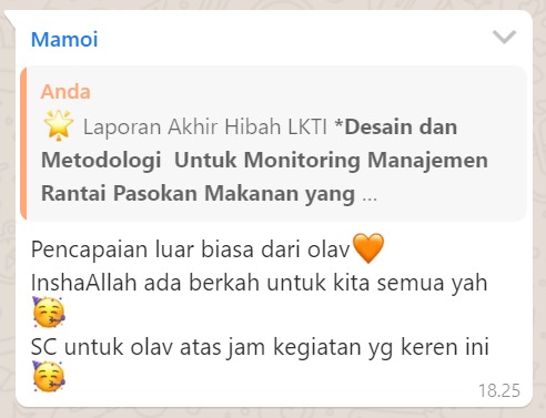 Pada tanggal 11 Oktober 2021 Olav berkontribusi membuat Laporan Akhir Hibah LKTI – Desain dan Metodologi Untuk Monitoring Manajemen Rantai Pasokan Makanan yang Terdesentralisasi Menggunakan Blockchain untuk Ekonomi Industri