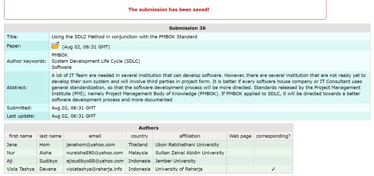 Jadi Olav pada tanggal 02-Agustus-2021 telah berhasil submit 2 draft paper tambahan untuk ICOSTECH