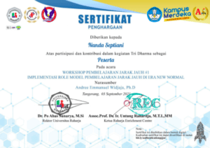 Workshop Pembelajaran Jarak Jauh (PJJ) Day 1 ini dengan tema “IMPLEMENTASI ROLE MODEL PEMBELAJARAN JARAK JAUH DI ERA NEW NORMAL”