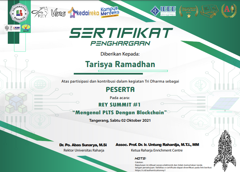 Pada tanggal 02 Oktober Ica mengikuti REY SUMMIT #1 seru banget acaranya temanya “Mengenal PLTS dengan Blockchain”