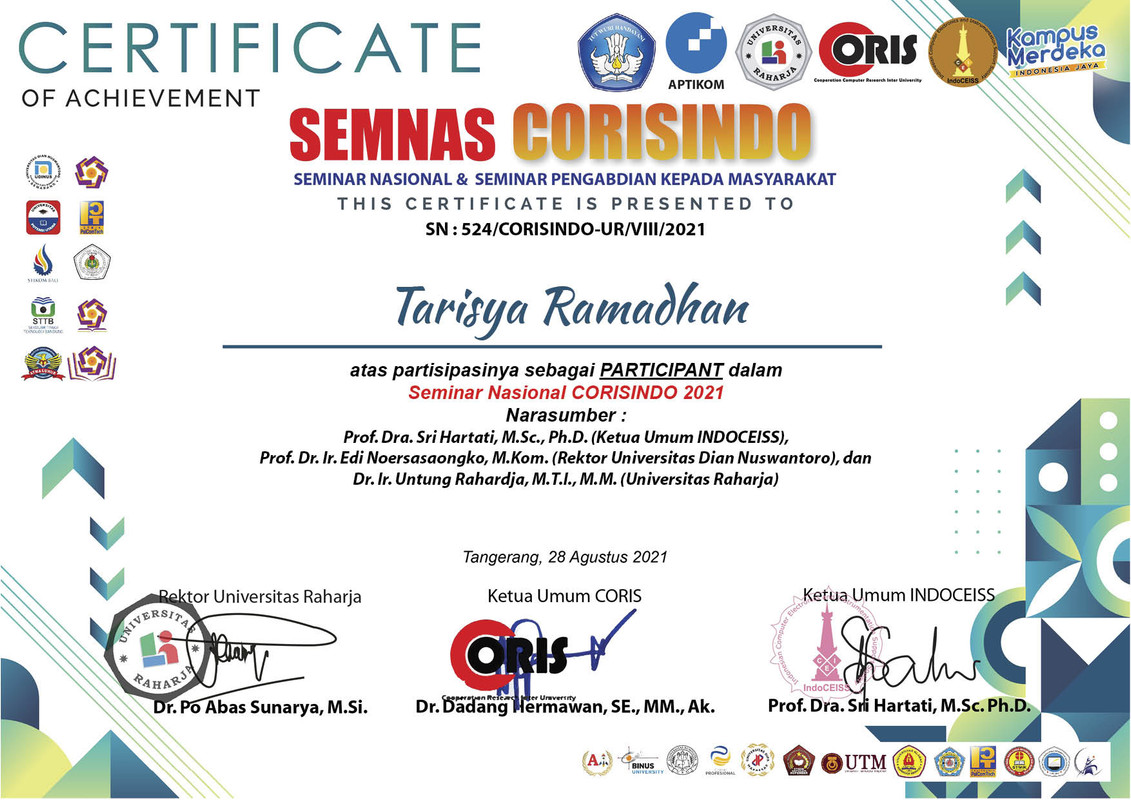 Pada tanggal 28 Agustus Ica mengikuti SEMINAS CORISINDO 2021 seru banget, dan Alhamdulillah ica mengikutinya hingga selesai