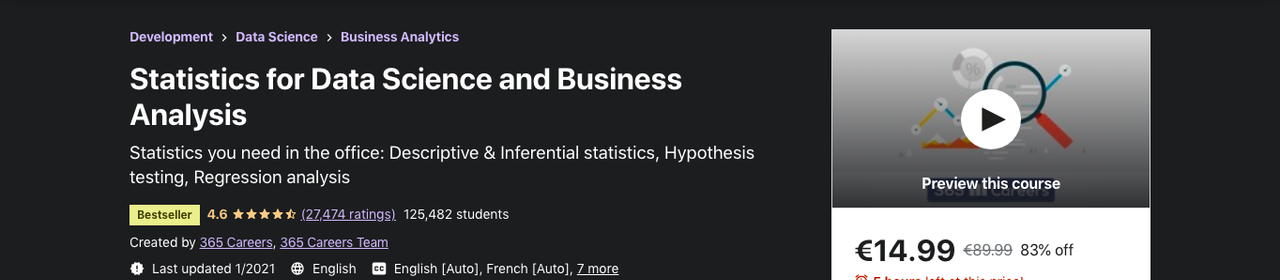 Hallo guys kali ini ica mau sharing tentang udemy yang sudah ica tonton nihh yang berjudul ” Statistics for Data Science and Business Analysis “