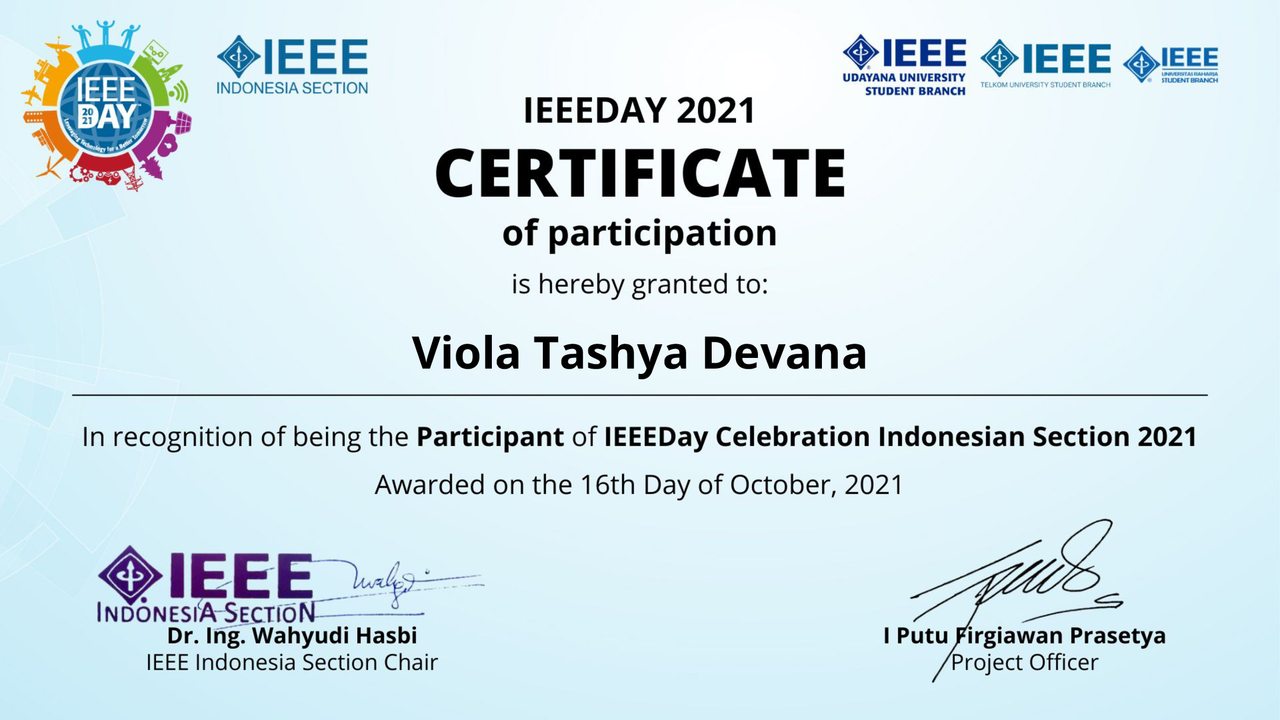 Pada tanggal 16 Oktober 2021 Olav dan anggota IRSB ( IEEE Raharja SB ) lainnya mengikuti acara IEEE Day gak hanya anggota IRSB, tapi IEE Seluruh Indonesia lhoo, keren bangeet^^