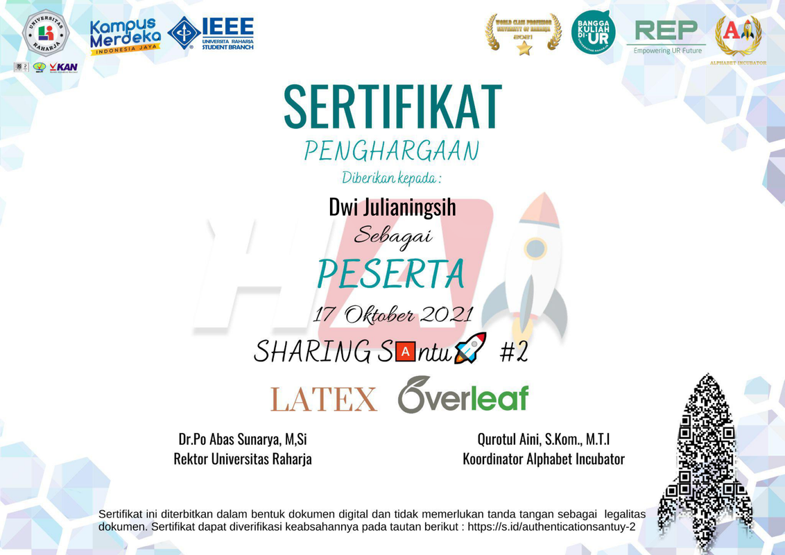 Pada tanggal 17 Oktober Dj mengikuti Sharing S🅰️ntu🚀 #2 yang diadakan via zoom yang seruu lohh dengan tema ” Overleaf Latex ”